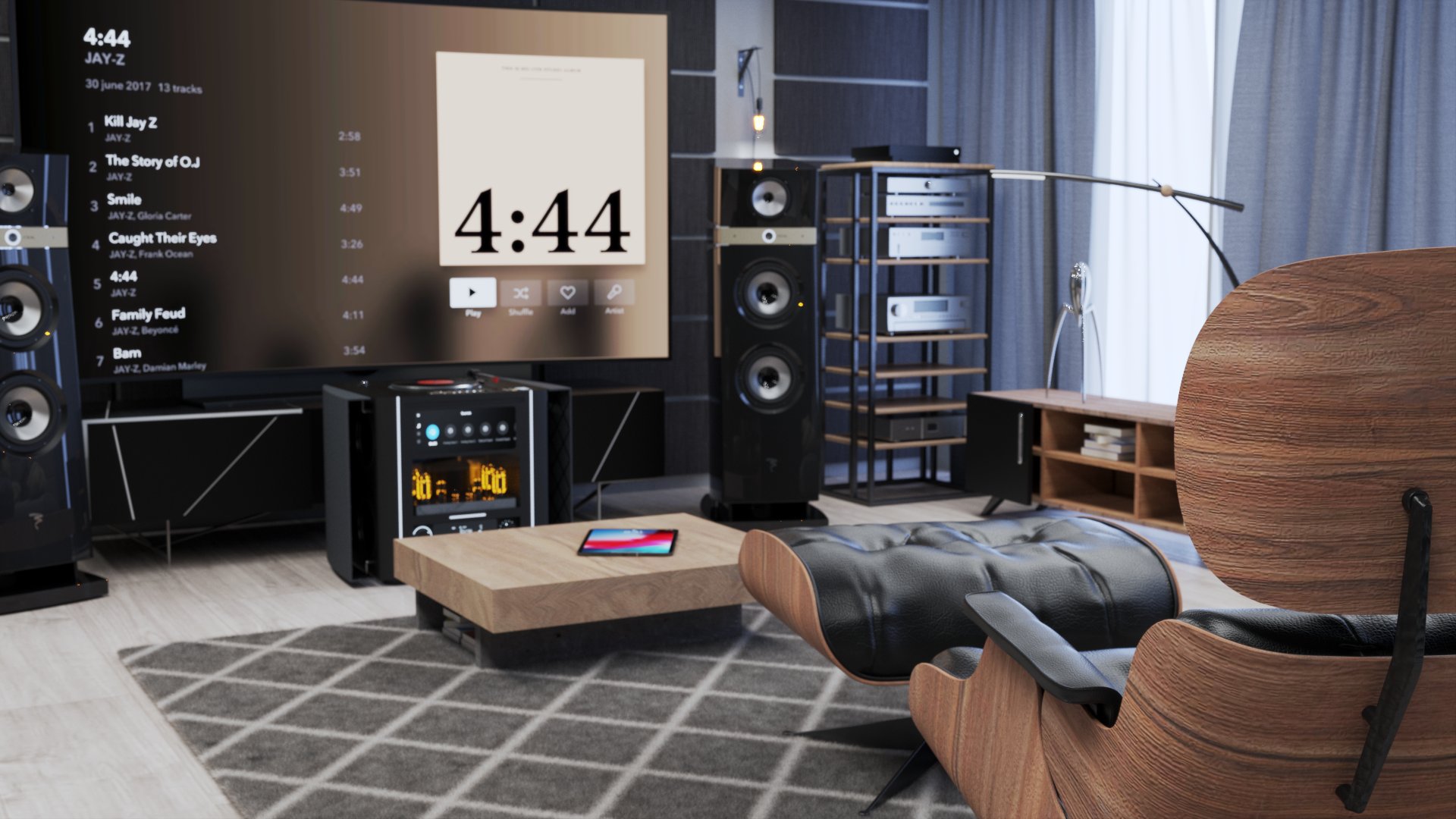 A modern HiFi room designed around the listener and featuring my SoundCube speaker.