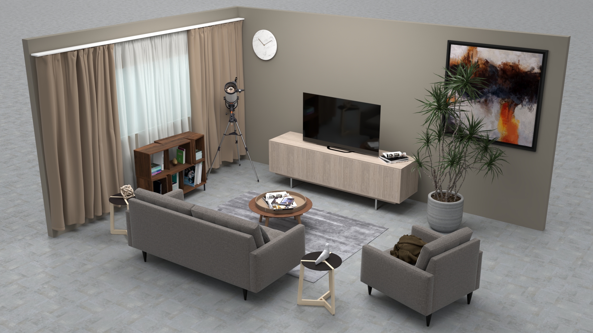 A mockup of a family living room for staging and other purposes that I made for a client.